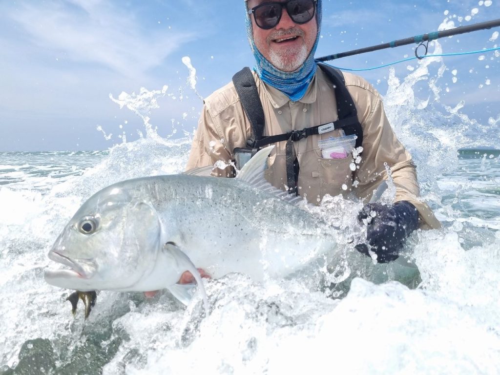 After a tough couple of days, the fishing began to turn, with GT’s surfing waves and a fish or two coming to hand in each session. On the final day the taps opened and the reef came alive with GT’s and massive Bluefin! Standing on an abandoned beacon tower we could see GT’s hunting down the baitfish taking refuge in the shallowest part of the reef. A huge Nurse Shark entered the reef with a monstrous GT on his back hoping to snap up any fleeing prey. The shouts from the tower were frantic, and eventually there were GT’s on the other end and smiles from ear to ear!